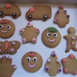 4To make the frosting, whip egg whites and cream of tartar until foamy. Gradually add sugar and continue to beat until icing is stiff. Add food coloring if desired and pipe onto cooled cookies. This icing can also be used as a glue to affix candy decorations.