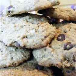 2In a large bowl, cream together the butter, peanut butter, white sugar and brown sugar. Beat in the eggs one at a time, then stir in the milk, cream and vanilla. Combine the flour, baking soda, salt and cinnamon, stir into the creamed mixture. Finally, mix in the rolled oats and chocolate chips. Drop by rounded spoonfuls onto the prepared cookie sheets.