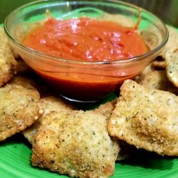 3In a large heavy pan, pour oil to depth of 2 inches. Heat oil over medium heat until a small amount of breading sizzles and turns brown. Fry ravioli, a few at a time, 1 minute on each side or until golden. Drain on paper towels. Sprinkle with Parmesan cheese and serve immediately with hot marinara sauce.