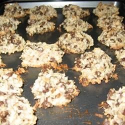 Stir in chocolate chips and almonds; drop by teaspoonfuls onto lightly greased cookie sheet.