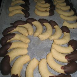 4While cookies cool, melt chocolate chips in a double boiler or in a bowl in the microwave. When cookies are completely cool, dip one half in melted chocolate.