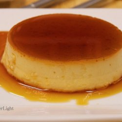 4To serve, warm the bottom of the pie plate over a pan of simmering water to loosen the caramelized sugar. Place a serving plate on top of the dish, and invert so that the flan is on the serving dish and the caramelized coating is on top.