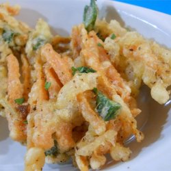 3Using tongs, pick up veggies and drop into hot oil. Fry 3 minutes on one side and 2 minutes on the other.