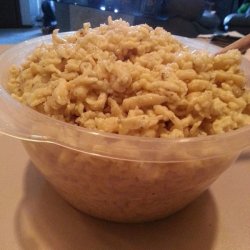 2Bring 4 cups water and 2 tablespoons salt to a boil in a wide pot. Place part of the dough into a spaetzle press or potato ricer. Press dough into boiling water; cook and stir until pasta is tender, about 1 minutes. Remove pasta with a slotted spoon to a large bowl. Repeat with remaining dough.