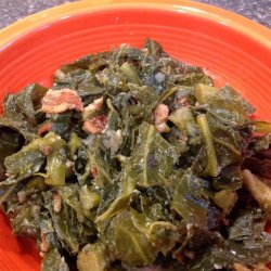 1Heat olive oil in a large pot over medium-high heat. Cook and stir bacon in hot oil until crisp, 7 to 10 minutes. Remove bacon from pot, crumble, and return to the pot. Add onion to the bacon; cook and stir until the onion is tender, about 5 minutes. Stir garlic into the bacon mixture; cook and stir until fragrant, about 2 minutes. Add collard greens, turnip greens, and mustard greens; cook and stir until the greens start to wilt, 2 to 3 minutes.