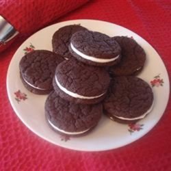 5NOTE: Adding chopped pecans to the cookies without making them into sandwiches is also very good. Spice cake mix can be used in place of Devil's food.
