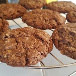 3Whisk oats, flour, chocolate chips, cocoa powder, baking soda, and salt together in a bowl; slowly stir into butter mixture until dough is just mixed. Scoop dough using a small scooper onto baking sheet.
