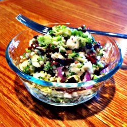 "A nice crunch in this salad, real bacon bits, diced broccoli, cauliflower, shredded sharp Cheddar cheese and onion are tossed with a yummy, sweet, and tart dressing and chilled.