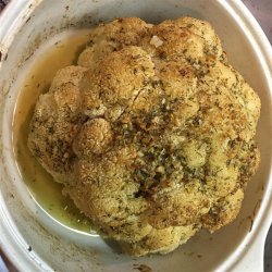 "An entire head of cauliflower roasted with butter, garlic, and herbs. Can convert cauliflower-avoiders into cauliflower-lovers! A beautiful and delicious way to serve cauliflower. Never any leftovers. Can substitute low-fat butter for butter."