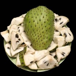 1Working in batches, press soursop pieces through a fine-mesh strainer with the back of a spoon into a bowl to remove the juice from the fruit.