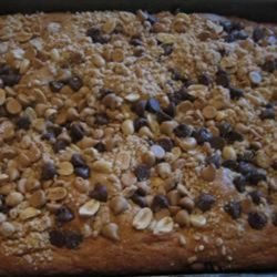 3Combine peanuts, remainder of dough mix, and rest of the chips; sprinkle over batter.