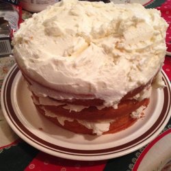 5When the cake is cooled, invert onto a serving tray. Spread filling over the top and cover with remaining layer of cake. Keep chilled until 1/2 hour before serving.