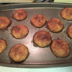 4Divide dough into 14 portions and roll into balls. Spread cinnamon-sugar into a wide, shallow bowl. Roll dough balls in the cinnamon-sugar and arrange onto a baking sheet.