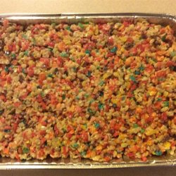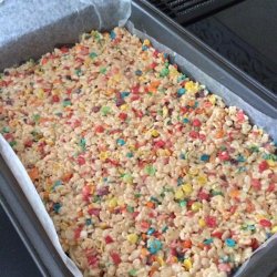 3Mix 1/2 the rice cereal and 1/2 the fruit-flavored cereal into marshmallow mixture until evenly coated. Mix remaining rice cereal and fruit-flavored cereal into marshmallow-cereal mixture; press into the prepared baking dish. Sprinkle sea salt over the top.