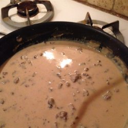 2Stir flour, beef bouillon, and black pepper into sausage until evenly coated and grease is absorbed, 2 to 3 minutes. Gradually stir milk into sausage mixture; add Worcestershire sauce. Simmer gravy, stirring often, until thickened, 10 to 15 minutes.