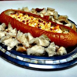 5Bake filled bread bowl in the preheated oven, stirring occasionally, until bread bowl is toasted and dip is bubbling, about 30 minutes. Serve with Italian bread cubes for dipping.