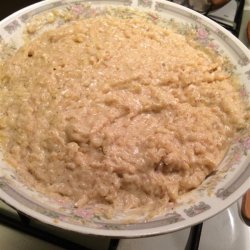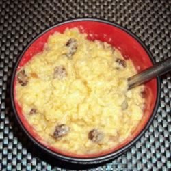 1Bring the heavy cream, water, brown rice, and salt to a boil in a pot; reduce heat to low, cover, and simmer until the liquid is completely absorbed, about 80 minutes. Fold the raisins into the mixture and continue cooking until the raisins plump, about 10 minutes more.