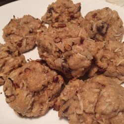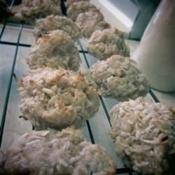 2Combine flour and margarine in a medium size mixing bowl. Mix in sugar, cinnamon and baking powder. Stir the egg into the mixture. Once the egg is well incorporated stir in the coconut, raisins and vanilla. Drop the dough in rough heaps the size of an egg onto cookie sheets.