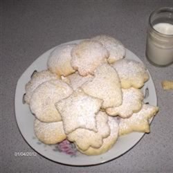 4On a floured surface, roll out the dough 1/4 inch thick. Using a cookie cutter, cut into desired shapes and place 1 1/2 inches apart on baking sheets.