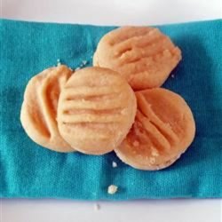 2Roll dough into small balls, about the size of a marble. Place on an ungreased baking sheet and flatten to 1/8 inch thickness with the palm of the hand. Press with fork in one direction to make a design.
