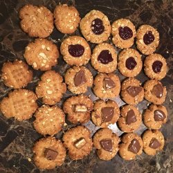 "These cookies are great for kids of all ages. I usually double the recipe when I make them. Using a cookie scoop and soda bottle cap to make the indentations results in uniform cookies, which makes a nice presentation. But you can improvise with other lids; just aim for something about the size of a quarter. Use any variety of jelly, but I do not recommend jelly with chunks of fruit, like strawberry. Attempting to move the cookies prior to cooling completely will cause them to break."