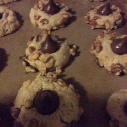 3Bake for 8 to 10 minutes in the preheated oven, until the edges turn golden. While cookies are hot press a chocolate kiss into the center indention. Let cool on baking sheet for 5 minutes before removing to wire racks to cool completely.
