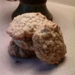 2In a medium bowl, cream together the shortening, brown sugar and white sugar. Stir in the egg and vanilla. Sift together the flour baking powder and salt, add to the creamed mixture and mix well. Finally, stir in the nuts, corn cereal and quick oats.