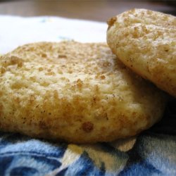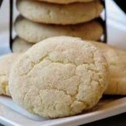 2Preheat oven to 400 degrees F (200 degrees C). In a small dish, mix together the remaining white sugar and the cinnamon. Roll the dough into walnut sized balls, and roll the balls in the cinnamon and sugar mixture. Place the balls at least 2 inches apart on cookie sheets, and flatten slightly.