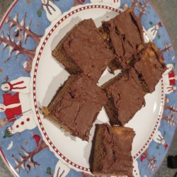 3In a medium bowl, stir together the butter mixture, and the eggs and vanilla. Sift together the flour, baking powder, salt, and cinnamon; stir into the egg mixture until well blended. Then stir in pecans. Spread the batter onto the prepared jelly roll pan. Bake in the preheated oven for 25 minutes. Immediately sprinkle chocolate chips over the whole sheet. Let stand for 5 minutes, then spread chocolate evenly over the entire surface. Cut into squares.