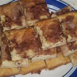 3Press the mixture evenly into the prepared jellyroll pan. Beat the egg white until frothy, and spread it over the top of the dough. Combine the remaining cinnamon and sugar, sprinkle it and the nuts over the top of the cookies.