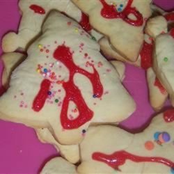 3On a lightly floured surface, roll the dough out to 1/4 inch thickness. Cut with cookie cutters and place onto the prepared baking sheets. Bake for 12 to 15 minutes in the preheated oven. Remove cookies to cool on wire racks. Frost with Butter Icing for Cookies.
