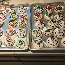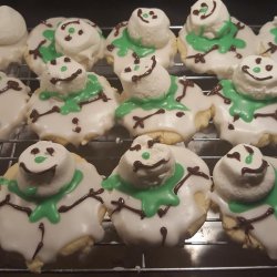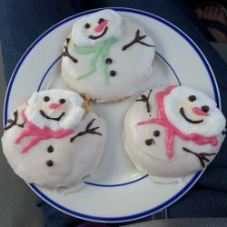 10Divide the reserved 1 tablespoon icing into 2 small bowls. Mix red food coloring into 1 of the bowls and orange food coloring into the other bowl. Decorate the snowmen with scarves or ties using the red icing and yellow icing.