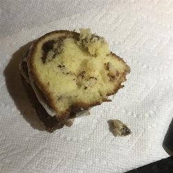3Pour 2/3 of batter into a greased and floured bundt pan. Sprinkle the cinnamon sugar mixture in the center of this and spread remaining batter evenly over this.