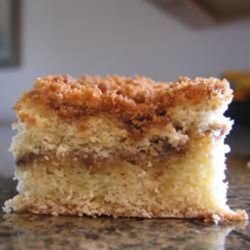 4Spread half of the cake batter in bottom of prepared pan. Sprinkle half of the streusel mixture over the batter. Spread the other half of the batter over the streusel mixture and top off with the rest of the streusel mixture.