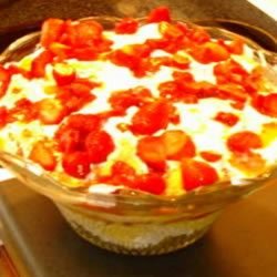 2Crumble half of the cake into the bottom of the punch bowl. Then put a layer of 1/3 of the whipped topping, a layer of 1/2 of the pudding, then a layer of 1/2 the can of pineapple. Repeat the layers in the same amounts, and top with the remaining whipped topping. Keep refrigerated until serving.