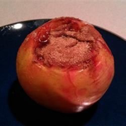 "An apple is filled with a cinnamon cheesecake center. I used a Braeburn apple but any variety will work. Great for a cold night! Serve with whipped cream or a scoop of vanilla ice cream."