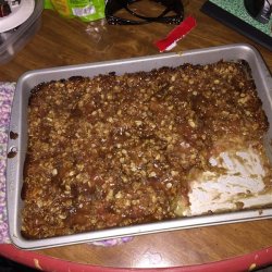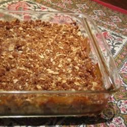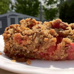 "A tangy crisp with a hint of ginger and a nice crunch to the topping. The custard filling is soft and creamy, yet holds together beautifully. This makes a large crisp - great to take to a potluck or party."