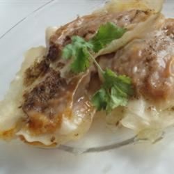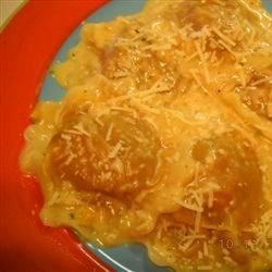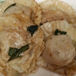 "This is an easy recipe that will amaze your guests with its elegance and complex flavors. The secret is using won-ton wrappers instead of pasta. This raviolis can also be prepared ahead and frozen, which makes it even more versatile! Try experimenting with acorn, pumpkin or another winter squash."
