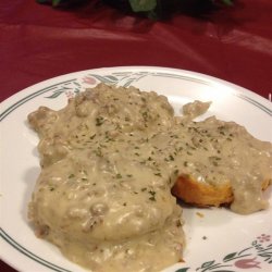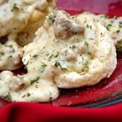 "This is a family favorite that my dad taught me long ago. It's very filling and if company arrives unexpectedly for breakfast, just add more flour and milk. This recipe works best with a cast iron skillet as it holds heat so well. And besides, it makes the meal more authentic! Serve over buttermilk biscuits. If you can, avoid using dried herbs. Fresh herbs add much more flavor."