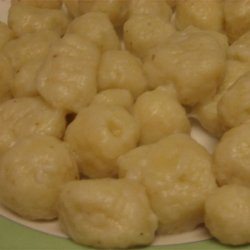 1Bring a large pot of salted water to a boil. Drop in potatoes and cook until tender but still firm, about 15 minutes. Drain, cool slightly, and peel. Mash potatoes with fork, masher or in ricer. Place in large bowl and make a well in the center. Put butter in well and allow to melt. When mashed potatoes have cooled, knead in enough of the flour to make a soft dough.